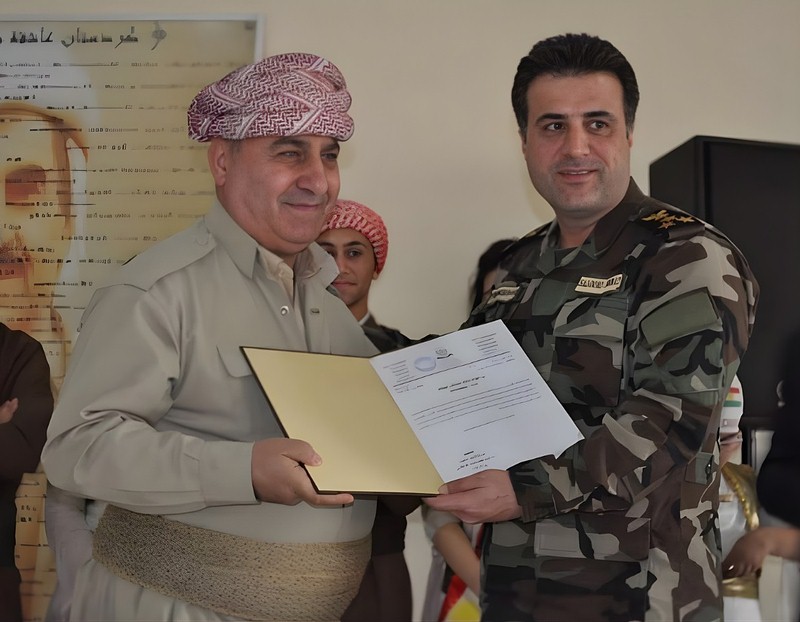 حصلت على درع البيشمركة من وزارة البيشمركة، والتقيت الرئيس مسعود بارزاني عام 2019،