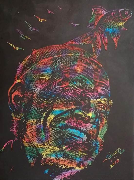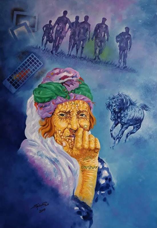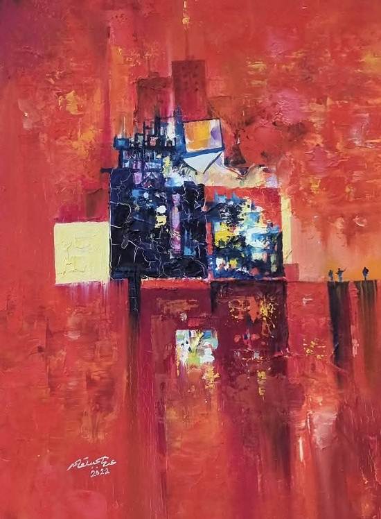 هو الساكن في الريح، بلا جهات ولا مدارس. يقف امام اللوحة بخوفه، محاولا تقديم شيء مختلف لا ينتمي لاحد سواه. فكل شيء في اعماله يتداخل: الالوان تتمدد، الابعاد تغتسل بين الفرشاة والاصابع، والمعطيات المكانية تنهال كصهيل قطعان احصنة اطلق سراحها توا.