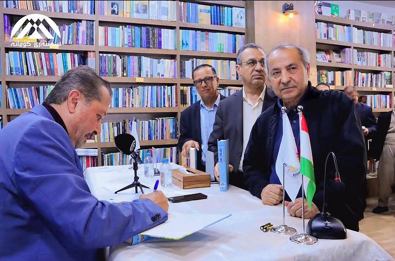 المؤلف الأستاذ رزكَار يوقّع كتابه وأنا مقابله
